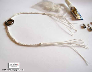 Now, you’re going to make a Lark’s Head knot onto your bezel connector. I talk about this a lot when I’m showing you jewelry made with hemp or twine. You just feed your loop through one ring of the connector -